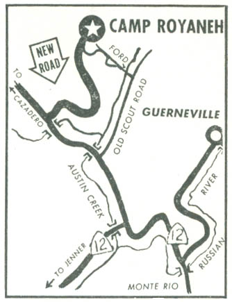 1952 Map showing old and new camp road