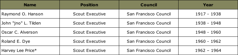 * Harvey Lee Price would become the Chief Scout Exec of the Boy Scouts of America in 1976