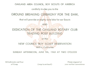Oakland Area Council Patch (c 1950) San Francisco Bay Area Council History B S A B S A Los Mochos Symbol, Oakland Area Council (1945 - Present) Camp Loomer Symbol, Oakland Area Council (1957 - 1973) TC San Francisco Training Camp symbol, San Francisco Council (1917 - 1924) Camp Moore symbol, San Francisco Council (1938 - 1951) Camp Lilienthal Symbol (Fairfax location), San Francisco Council (1928 - 1973) Camp Royaneh symbol, San Francisco Council (1925 - Present) Camp Lilienthal (Stern Grove location) Symbol, San Francisco Council (1919 - 1925) Boy Scouts of America, San Francisco Bay Area Council • 1001 Davis Street, San Leandro, CA 94577-1514, (510) 577-9000  |  Contact Webmaster Wente Scout Reservation Historical Documents 1959 - Present Fun Facts Camp Staff / Rangers Willits Scout Reservation Patch (c 1964) Boy Scouts of America, San Francisco Bay Area Council • 1001 Davis Street, San Leandro, CA 94577-1514, (510) 577-9000 Camp Site Map, 1969 Camp Site Map, 1974 Camp Site Map, 1985 Camp Site Map, 2000 Kalima Trail Map, 1977